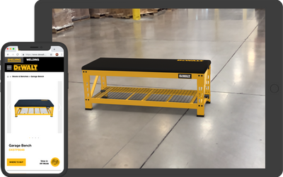 Augmented Reality (AR) is an interactive simulation of a real-world environment. Use Augmented View to see DEWALT Shelving in your home before buying. Planning your garage or industrial work area has never been so easy!