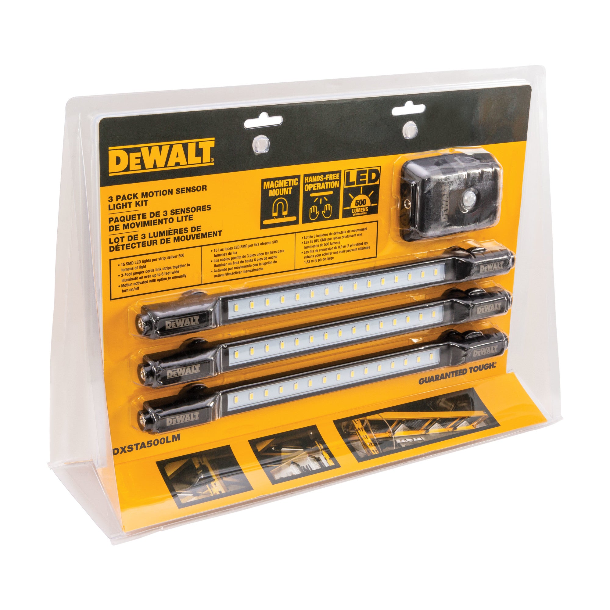If you are not completely satisfied with the performance of your DEWALT 1,500-Lumen LED Motion Activated Magnetic Light Kit (3 Lights, 500-Lumen each) for any reason, you can return it within 90 days from the date of purchase with a receipt for a full refund – no questions asked.