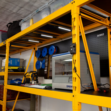 - LOW PROFILE - Low profile design uses a minimum footprint to provide light to your racks without using up your storage space