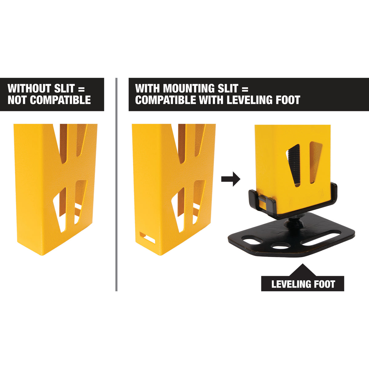 - EASILY LEVEL RACKS - Provides up to 7-inches of height adjustment to each upright allowing for easy rack levelling on uneven floors